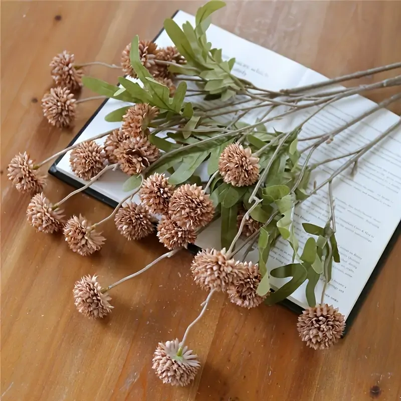 This Soft Brown Mini Artificial Chrysanthemum Pom Stem is an affordable floral option for styling wedding arrangements, event displays, or home décor. Featuring five small flower heads and realistic foliage, it’s a practical choice for budget-conscious decorating.