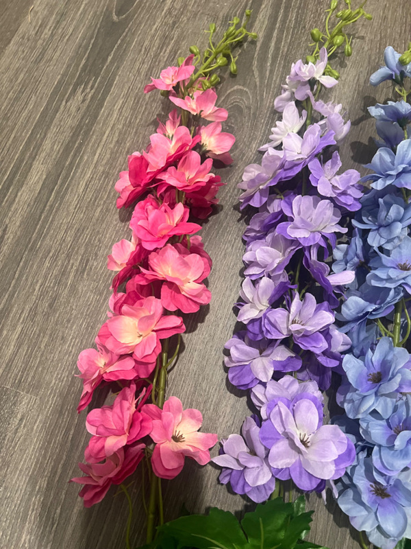 Size: Standing tall at 1000cm, this Delphinium stem commands attention and adds a touch of grandeur to your floral arrangements. The plastic bendable stem allows for versatile positioning, enabling you to create dynamic and captivating displays.