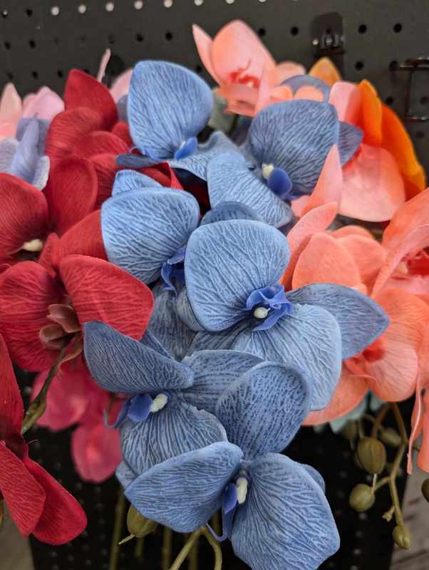- Flowers: 7 Dark Blue Cymbidium blooms, each 10cm in diameter, with 5 fabric petals