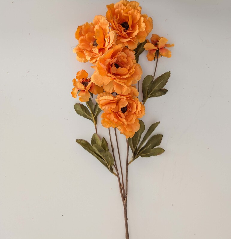 6 Head Peony 80cm Floral Stem - Autumn Orange