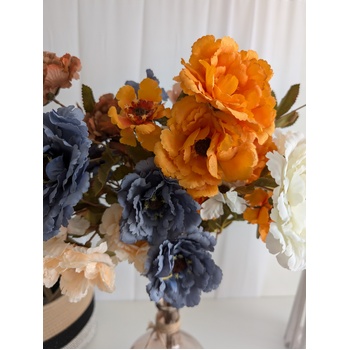 Add a touch of elegance to your decor with our 80cm Autumn Orange Artificial Peony Stem. This beautiful stem features six lifelike flowers—four large blooms measuring approximately 9cm in diameter and two smaller flowers at 5cm each. Perfect for weddings, events, or home decor, these peonies bring a natural charm to any setting. Whether used in bouquets, centrepieces, or as standalone accents, their delicate petals and realistic design make them a versatile choice for creating stunning floral displays.