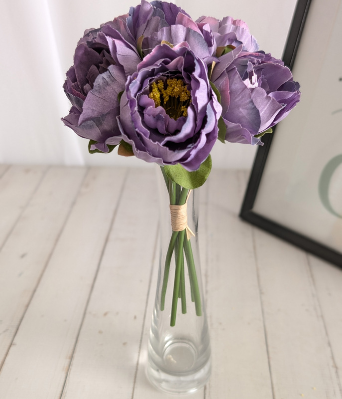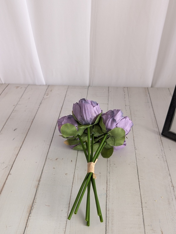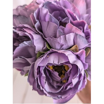 6 Head Small Artificial Two Toned Purple Peony Bouquet | 6 x 5.5cm Flowers
