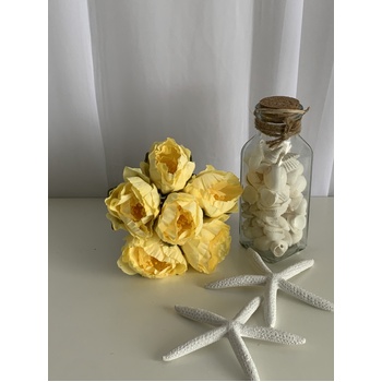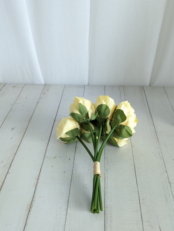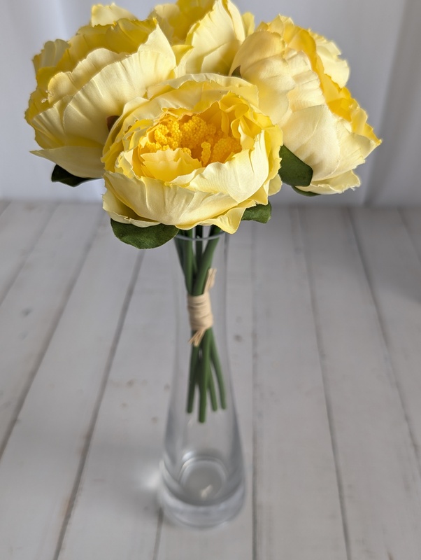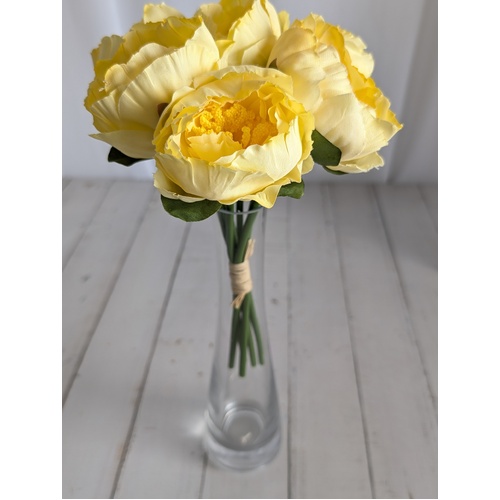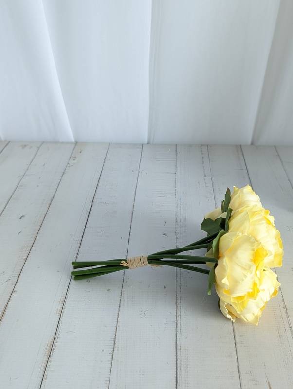 6 Head Small Artificial Yellow Peony Bouquet | 6 x 5.5cm Flowers