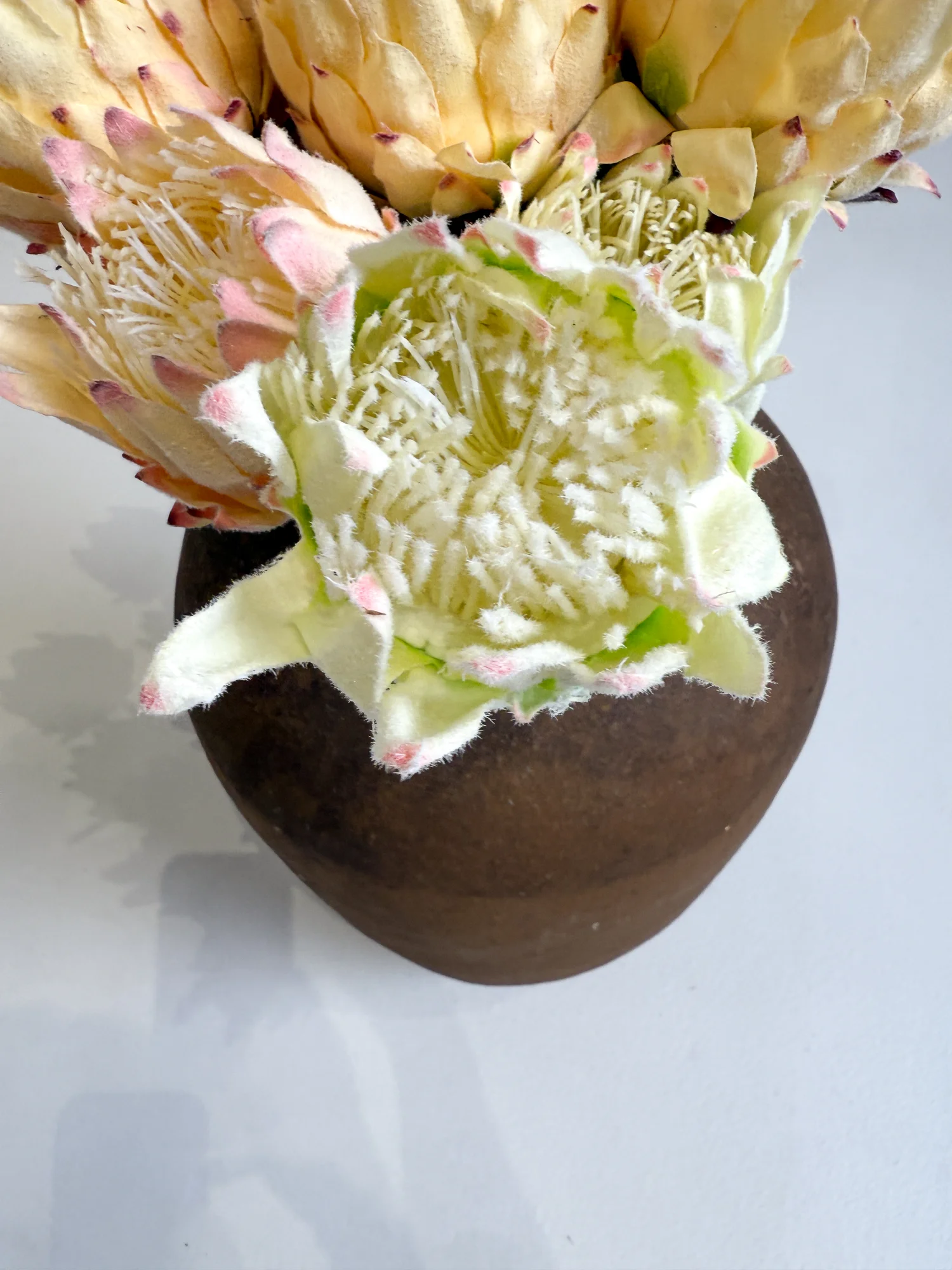 This artificial protea stem is commonly used in wedding bouquets, ceremony arrangements, reception centrepieces, and venue styling. It also suits native-inspired floral designs and modern home décor displays.
