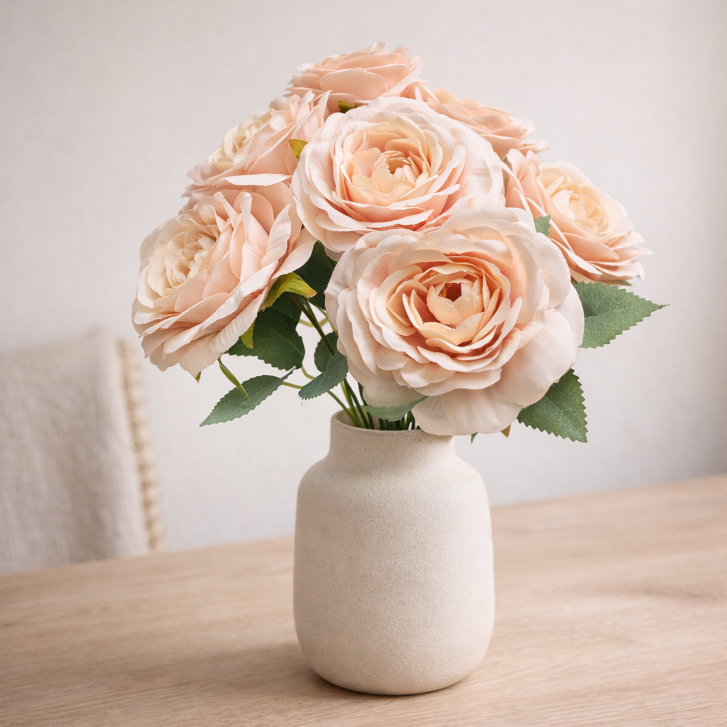 This artificial rose bush is ideal for wedding bouquets, bridesmaid flowers, centrepieces, ceremony arrangements, welcome signs, and home floral styling. Because the stems can be cut apart, it is useful for both full floral designs and smaller accent work where individual rose stems are needed.