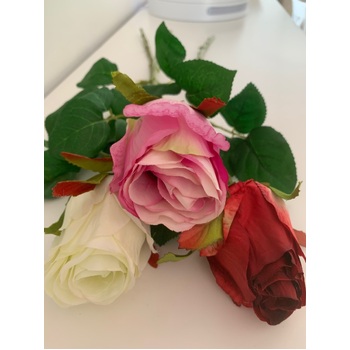 Complete Ensemble: The roses are accompanied by three sets of leaves, enhancing the overall natural appearance of the stem. The leaves contribute to the fullness and authenticity of the arrangement.