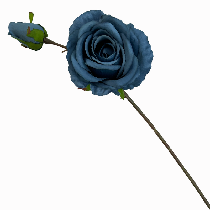Bring stunning beauty to your arrangements with this 66cm Dusty Blue artificial rose stem. The stem features a large flower approximately 12.5cm in diameter (16cm when petals are reflexed) and a single closed bud, this stem is a stunning choice for weddings, events, or home decor.