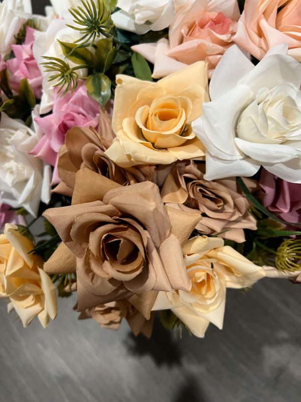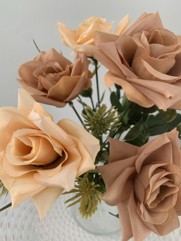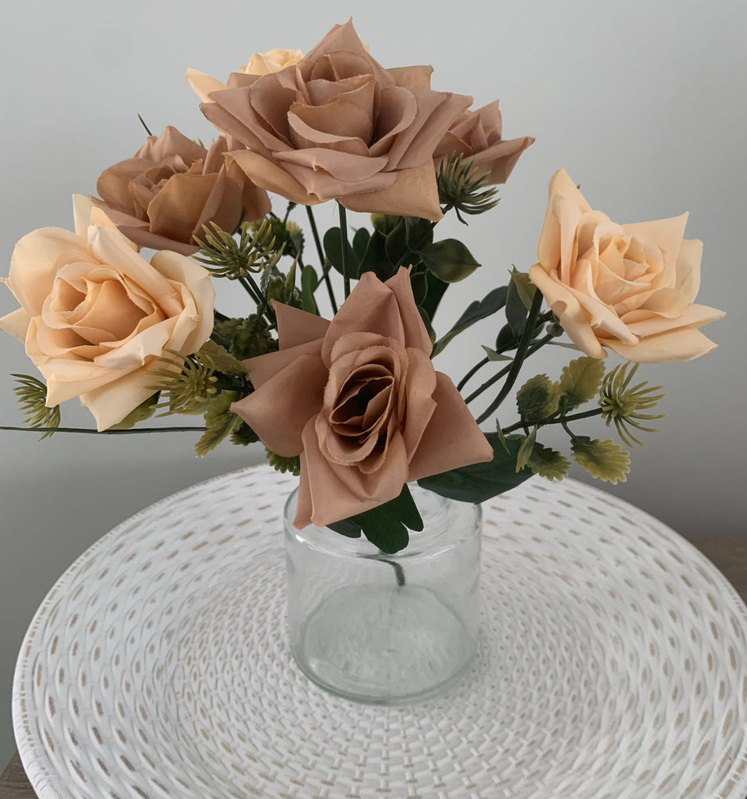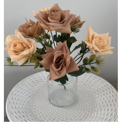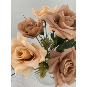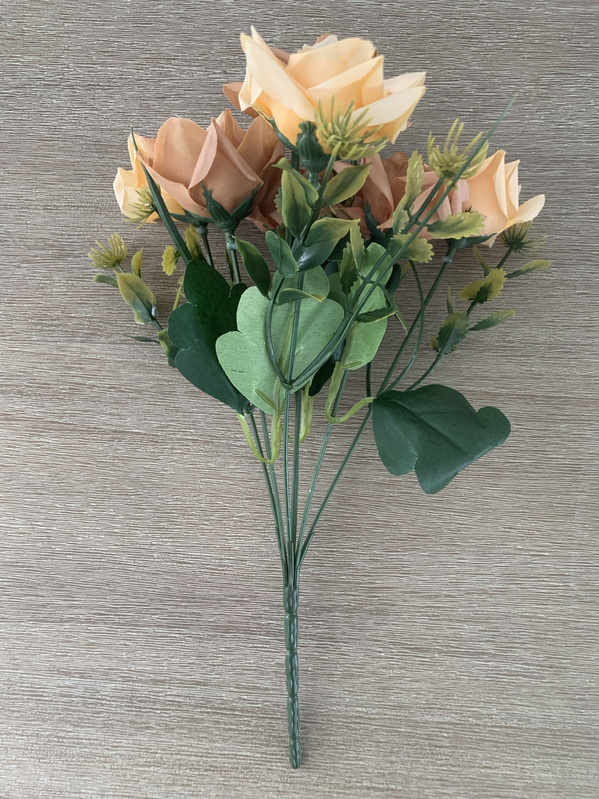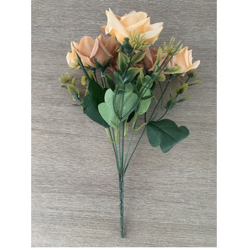 7 Head Rose Filler Bunch - Peach/Tan