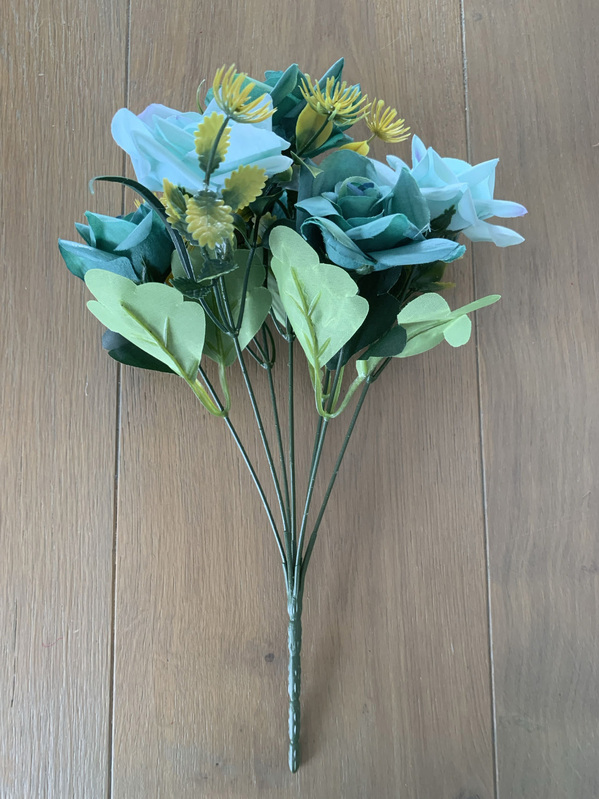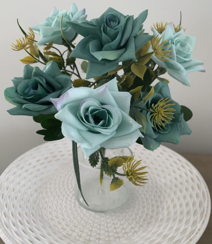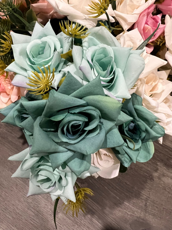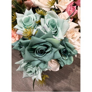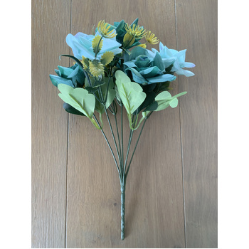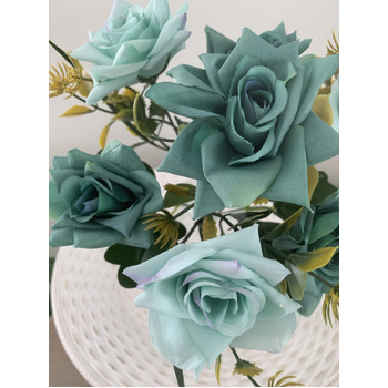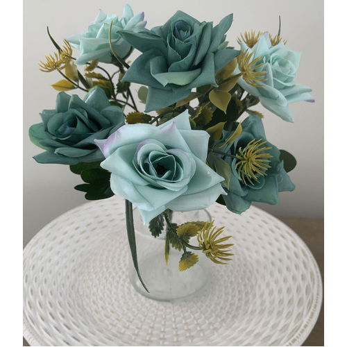 7 Head Rose Filler Bunch - Turquoise/Aqua