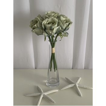 Give your event a burst of sunshine with our Artificial Soft Green Rose Bouquet. This charming arrangement features 7 semi-opened Soft Green roses, each measuring approximately 5.5cm in diameter. Its compact size and vibrant colour make it a versatile choice for various settings.