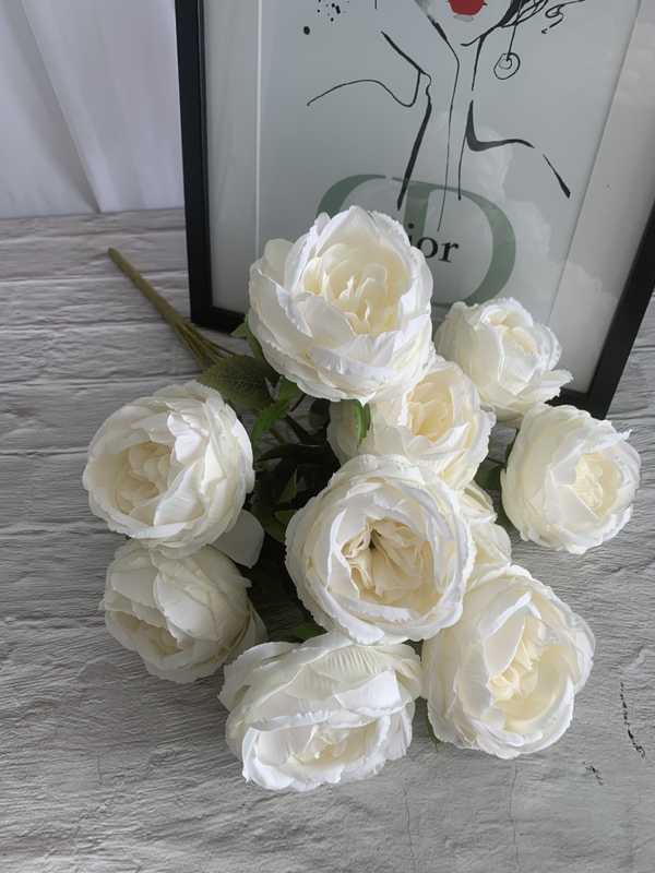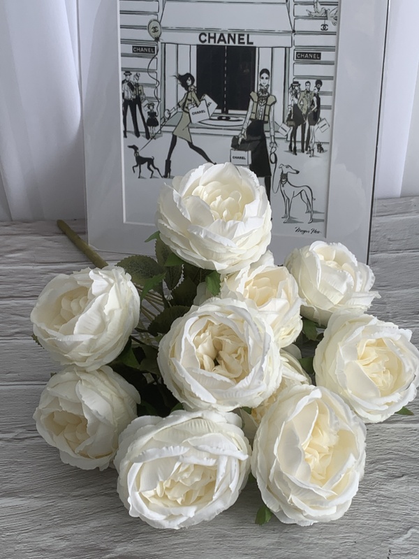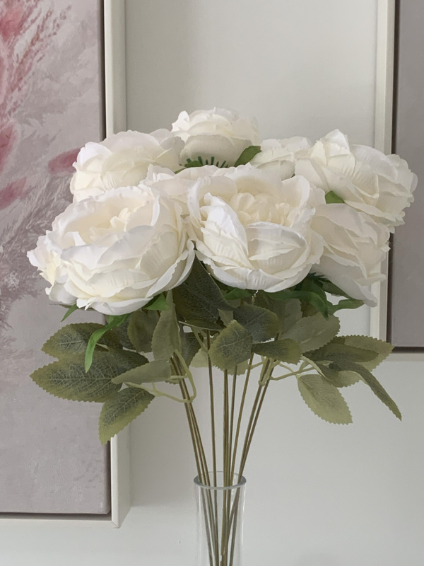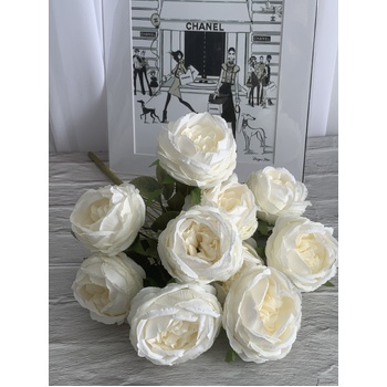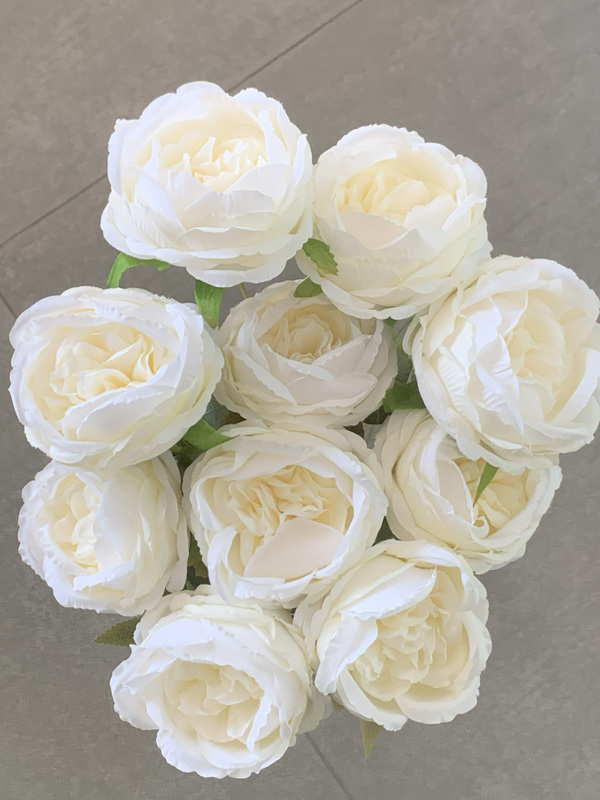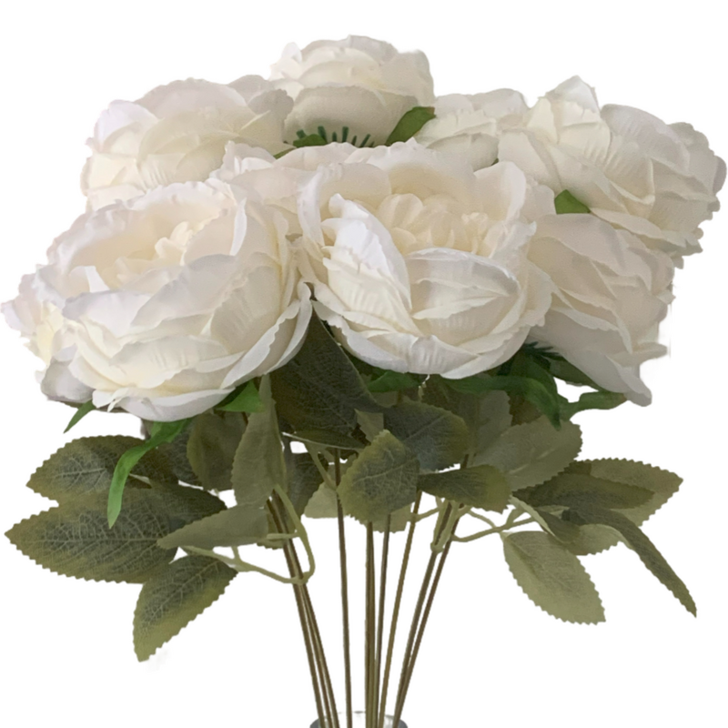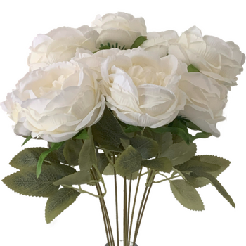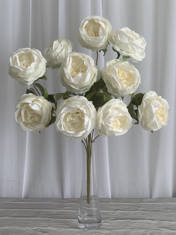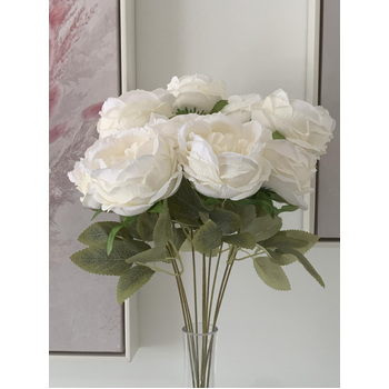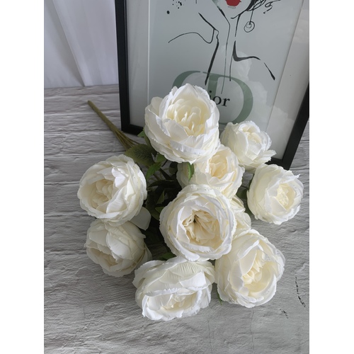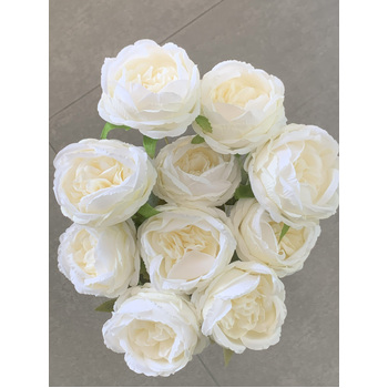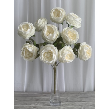50cm - Deluxe 10 Head French Rose Bud Bush - White/Cream (Peony)