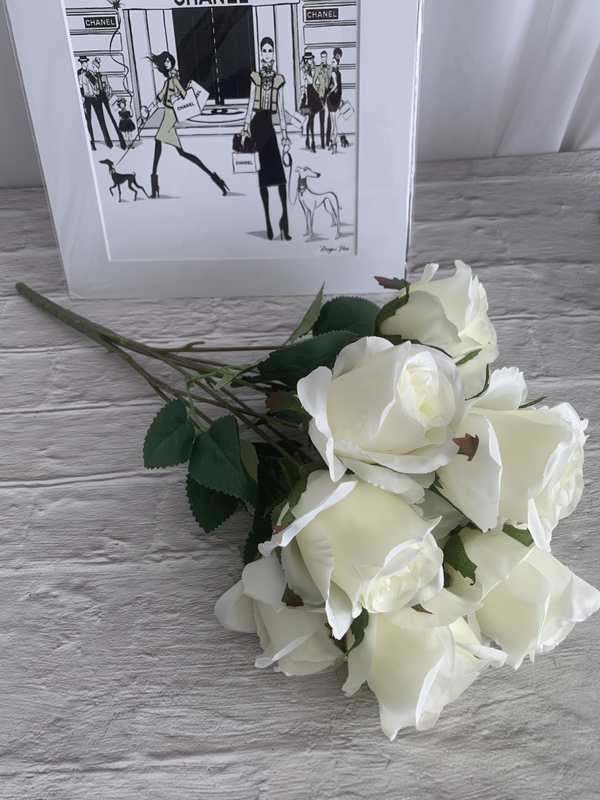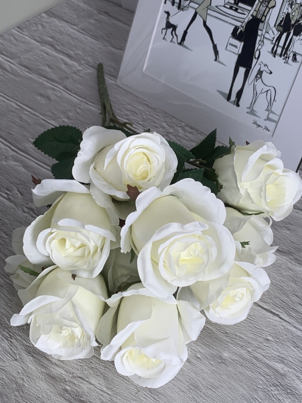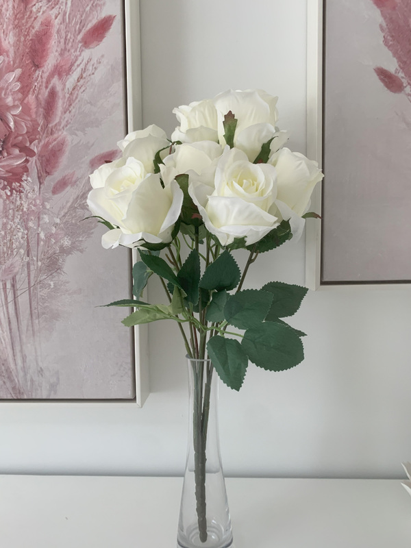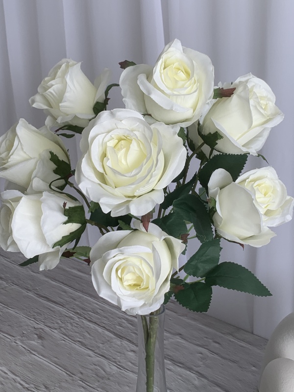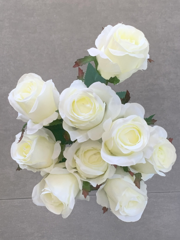 Qty: 10 semi open rose flowers per bush, 3 branches with 3 flowers, 1 branch with 1 flower, can be cut into individual flowers