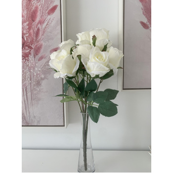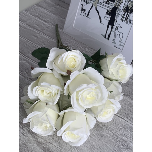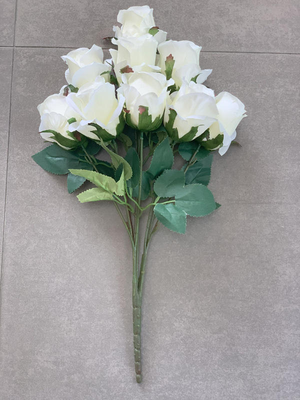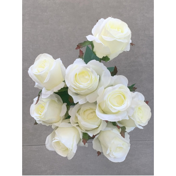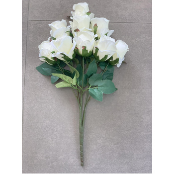 50cm - Deluxe 10 Head Rose Bud Bush - White/Cream