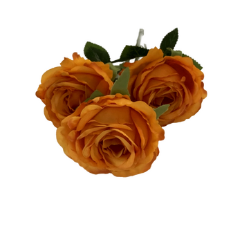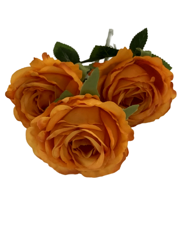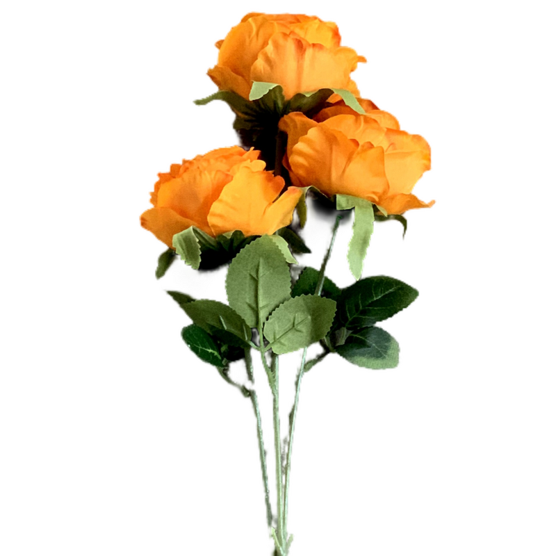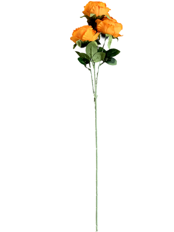 65cm - 3 Head Rose Flower Stem - Burnt Orange