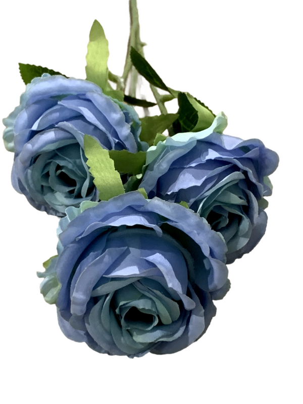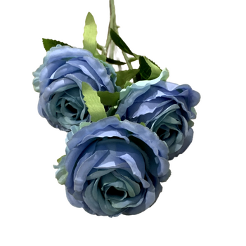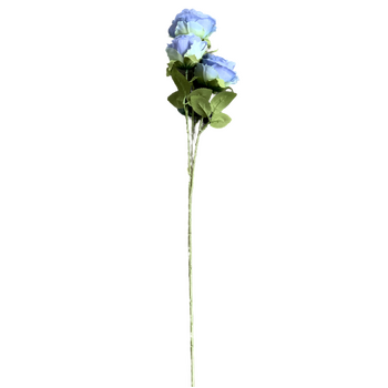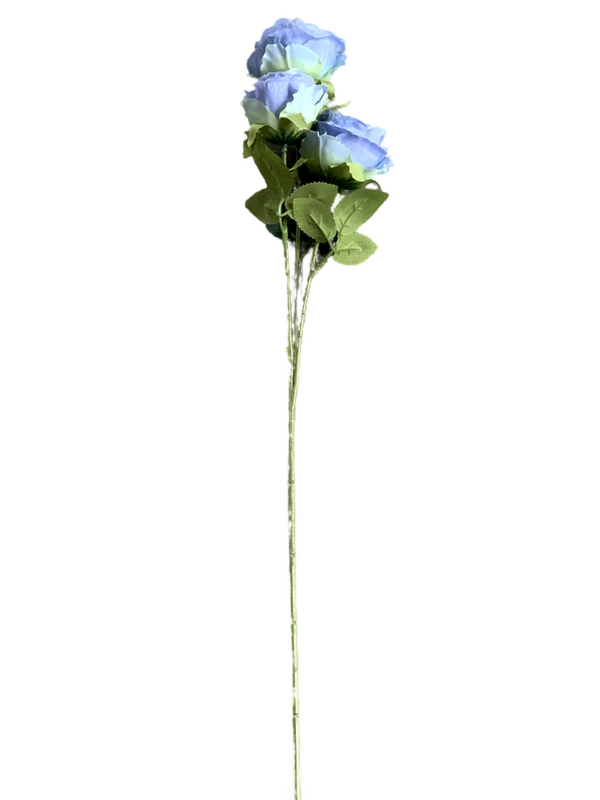 65cm - 3 Head Rose Flower Stem - Dusty Blue