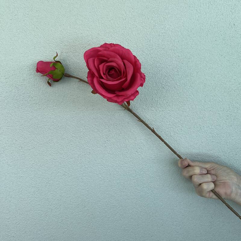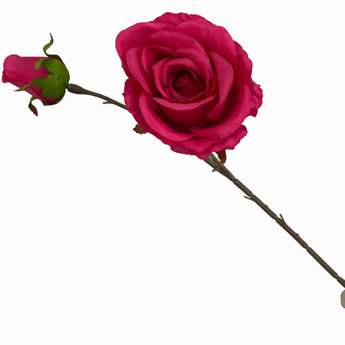 66cm Fushia Artificial Rose Stem with Large Bloom and Bud