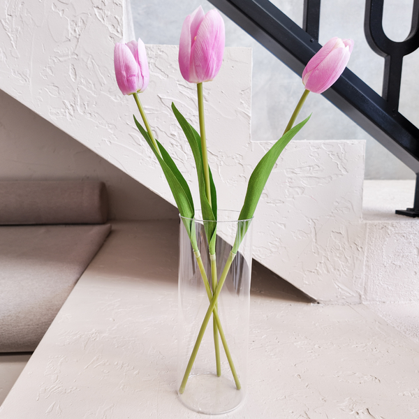 This Dark pink real touch tulip stem features a single, lifelike tulip flower with a soft, natural feel and clean modern shape. Designed to closely replicate the look and texture of fresh tulips, this stem is ideal for minimalist wedding styling, event arrangements, and contemporary home décor.