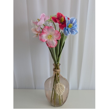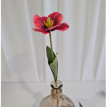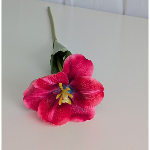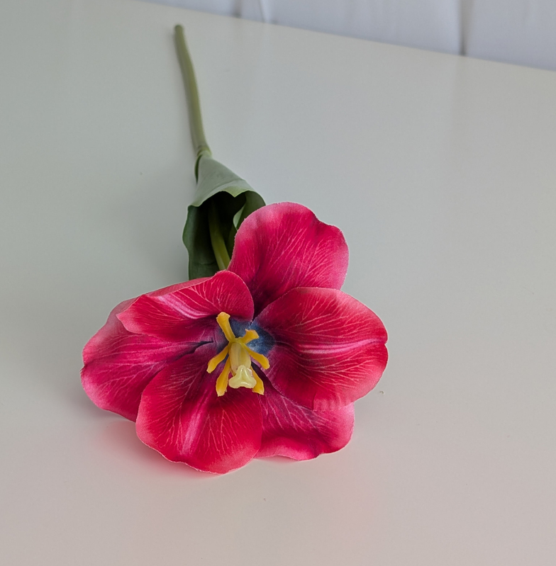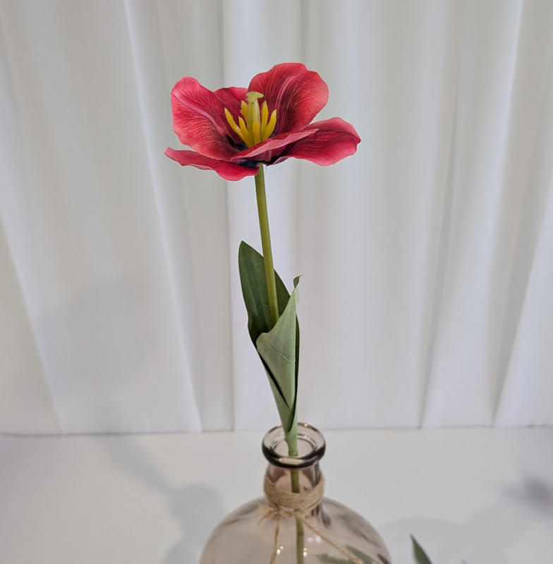 Add our stunning tulips to your arrangements with our 65cm Artificial Open Tulip. Featuring flowers approximately 11cm in diameter, this tulip is designed with two long, fabric leaves and a flexible wire/plastic stem for easy positioning. The flower and leaves are fabric, while the stamen is plastic. Perfect for weddings, events, or home decor, this tulip is ideal for creating elegant centrepieces, and bouquets, or adding a simple, natural element to your space.