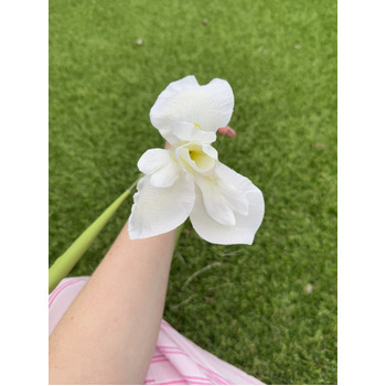 Add vibrant charm to your floral displays with this White 85cm Artificial Iris Stem. Featuring beautiful large blooms and long green leaves, this stem is an excellent choice for mass floral arrangements at weddings, events, or home decor projects. Though this is a budget-friendly design, a quick trim of the petals ensures a polished and elegant finish.