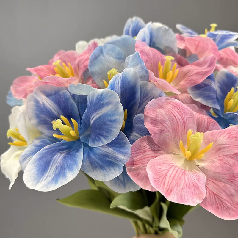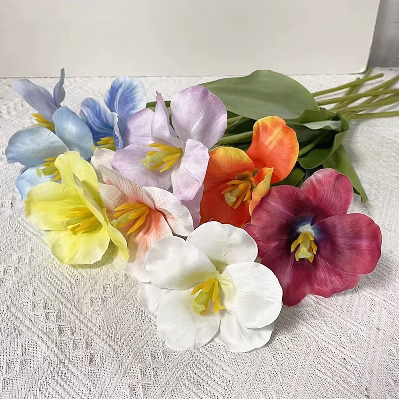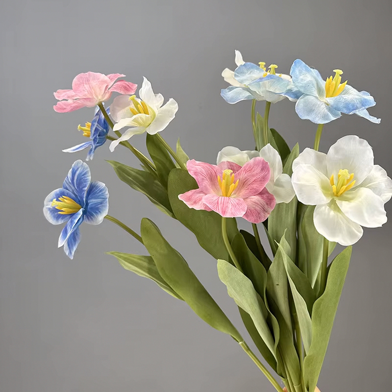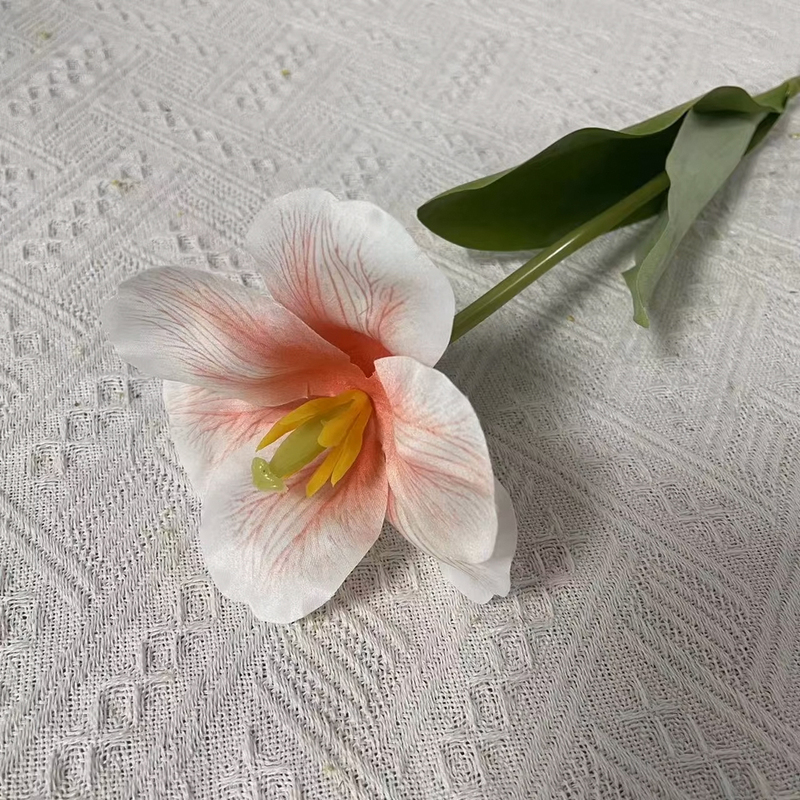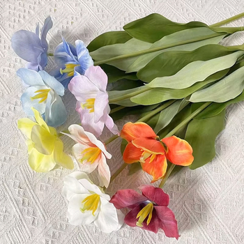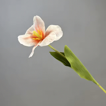 Add our stunning tulips to your arrangements with our 65cm Artificial Open Tulip. Featuring flowers approximately 11cm in diameter, this tulip is designed with two long, fabric leaves and a flexible wire/plastic stem for easy positioning. The flower and leaves are fabric, while the stamen is plastic. Perfect for weddings, events, or home decor, this tulip is ideal for creating elegant centrepieces, and bouquets, or adding a simple, natural element to your space.