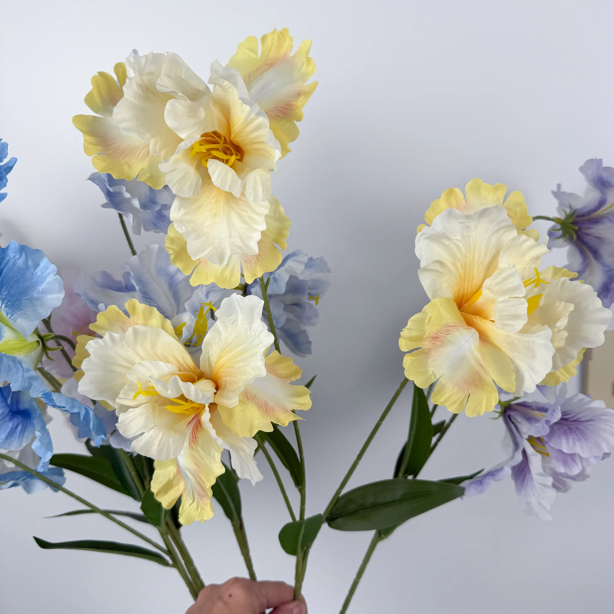 This artificial iris spray is ideal for wedding centrepieces, ceremony arrangements, backdrop styling, and large floral installations. It can be used on its own for a simple statement or combined with greenery and filler flowers for fuller designs. It is also suitable for home vases where extra height is needed.