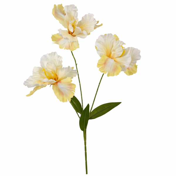This Yellow Ruffled Iris Spray is an 80cm artificial flower stem designed to add height and soft colour to wedding and event arrangements. Featuring three large ruffled iris-style blooms, this stem works well in tall vases, ceremony urns, and statement floral displays.
