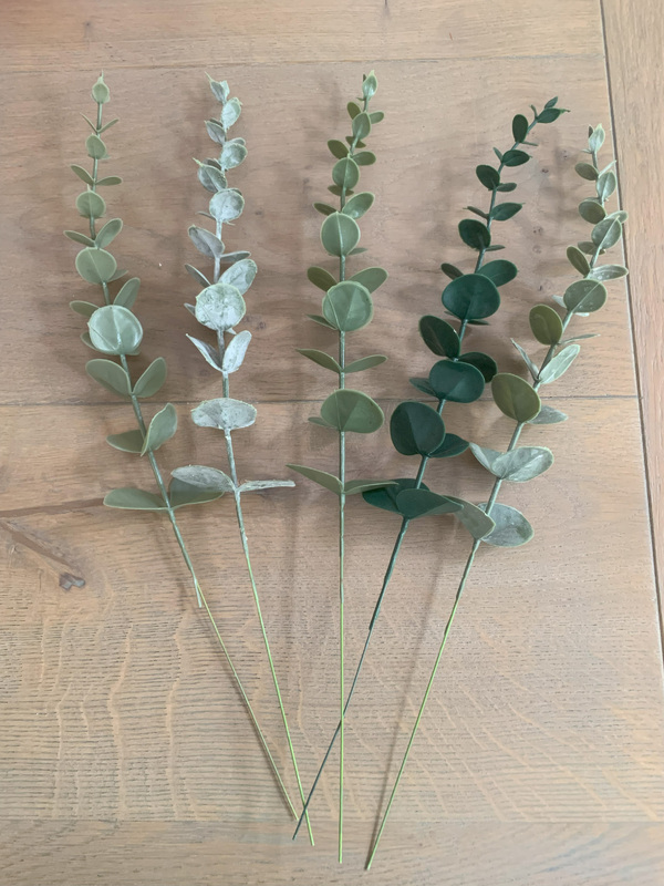 Imitation flocking on pale green leaves, 2nd from left in group photo