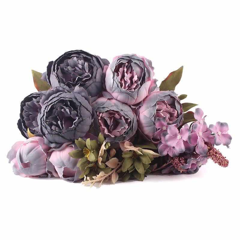 50cm - 8 Head European Peony Flower Bush - Charcoal/Dusty Pink