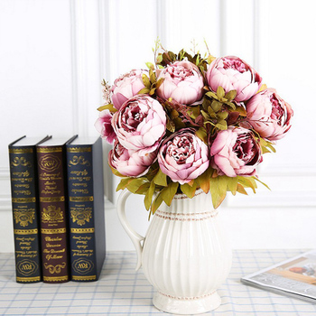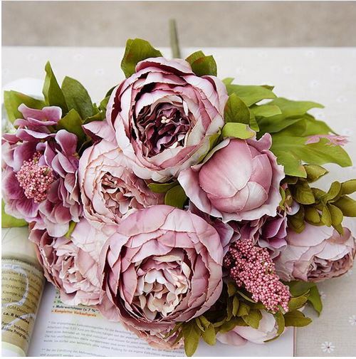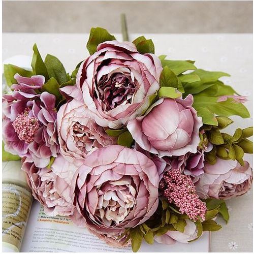 50cm - 8 Head European Peony Flower Bush - Mauve Shades