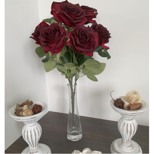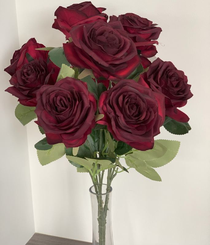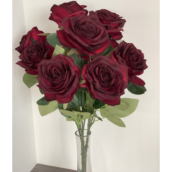 47cm - Deluxe 10 Head Rose Bush - Deep Burgundy