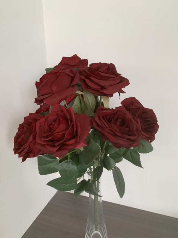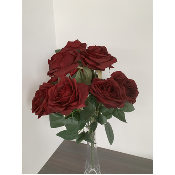 47cm - Deluxe 10 Head Rose Bush - Wine Red (Maroon)