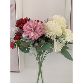 Qty: 7 stems on the bush, 4 with large flowers and 3 with greenery and daisies