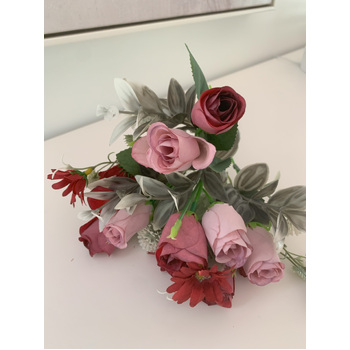 Red/Mauve Toned Rose Bud Filler Flower Bunch