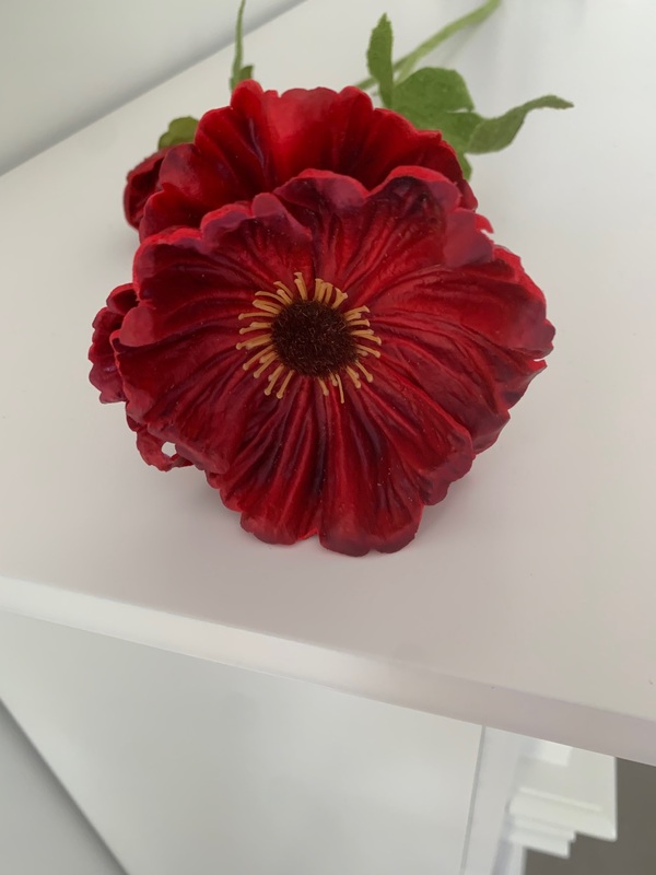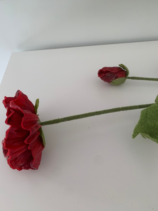 Flocked Finish: The stem and leaves are adorned with a flocked finish, enhancing the visual and tactile appeal of the poppy stem. This unique texture adds authenticity to the overall presentation.