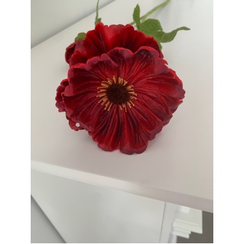 Introducing our 75cm Red Poppy Stem, a stunning tribute to the delicate beauty of poppies. This lifelike stem features a flocked finish on the stem and leaves, adding a touch of realism to its visual appeal. With one large real touch latex flower boasting a 10cm diameter and a small bud accompanied by two leaves, this poppy stem is a graceful addition to your floral arrangements.