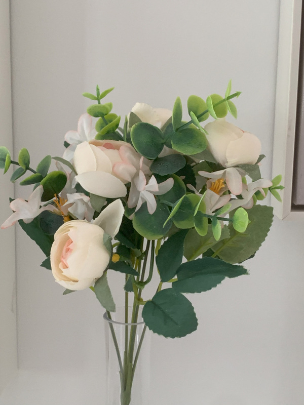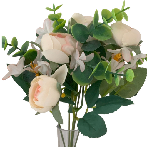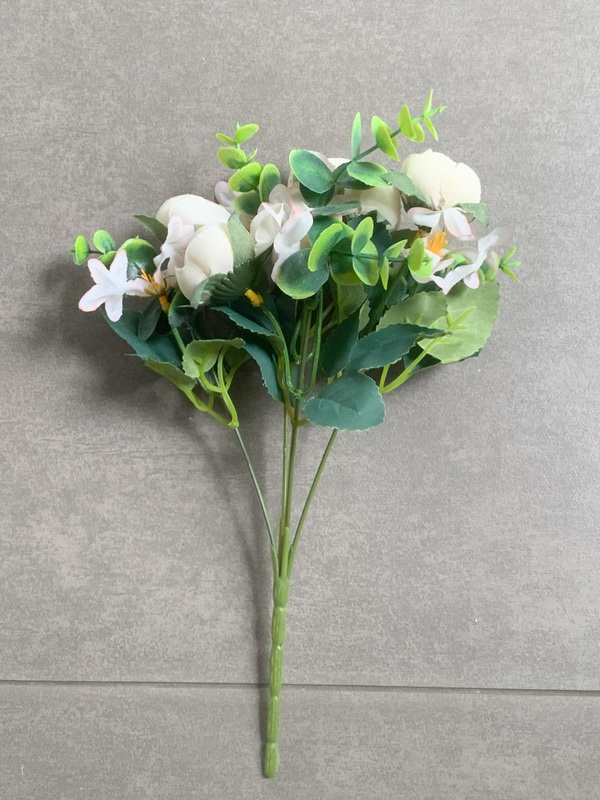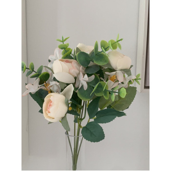 Item: Small filler bouquet containing 5 mini cottage rose flowers, fillers and leaves