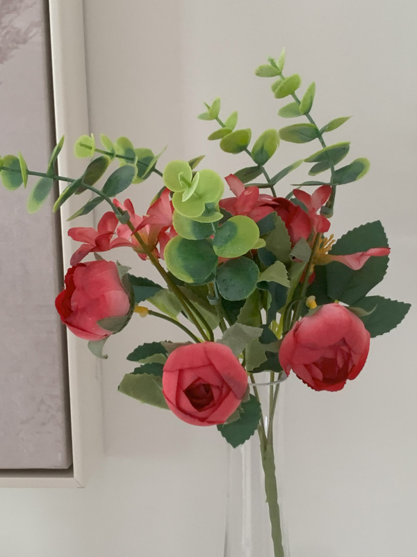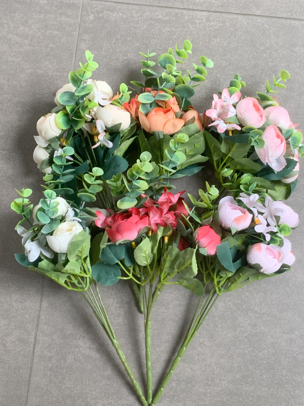 Item: Small filler bouquet containing 5 mini cottage rose flowers, fillers and leaves