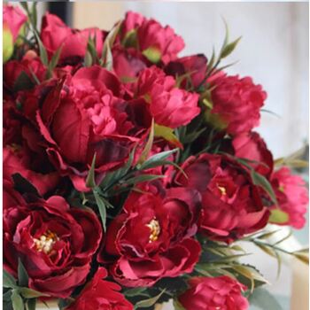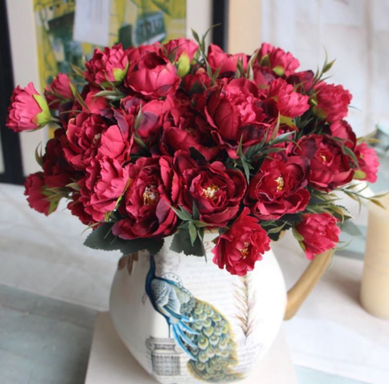 8 Head Small Deep Red Peony Filler Flower Bunch