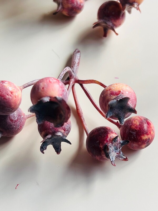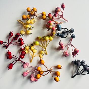 Note: Some berries may be stuck together, please be careful separating as the paint may pull away from the polystyrene berry. This cannot be avoided and happens on a few of these, we advise leaving the berries stuck together and not try to separate them.