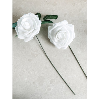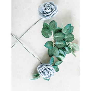 Single Latex Foam Rose Stems with separate leaves Bright Blue (photo is tending a little lighter than the actual colour)