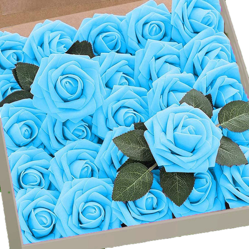 25pk - Bright Blue Foam Roses - 7.6cm on pick