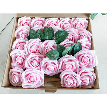 25pk - Pink Foam Roses - 7.6cm on stem/pick