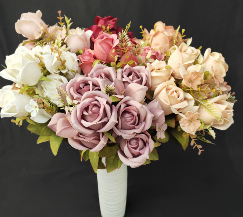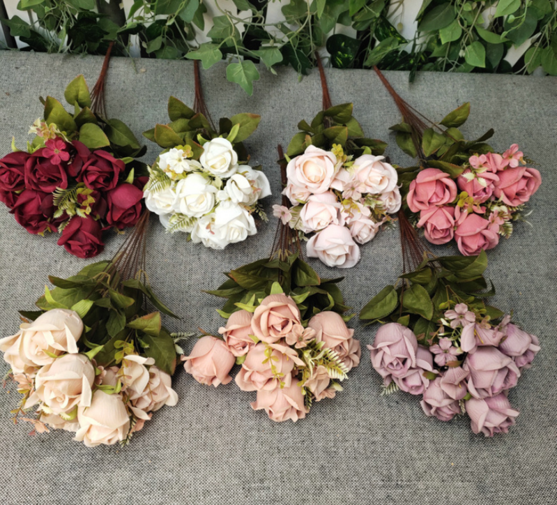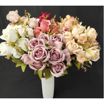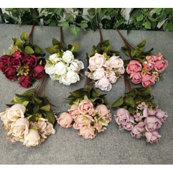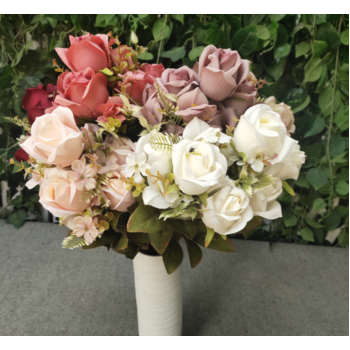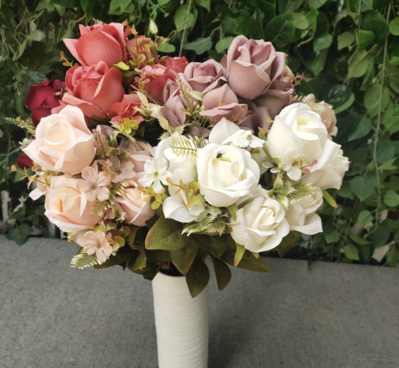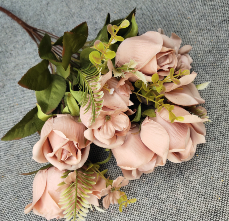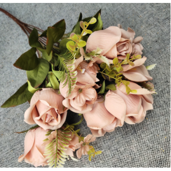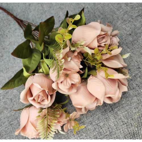 55cm - 11 Head Rose Bud Bush Dusty Peach