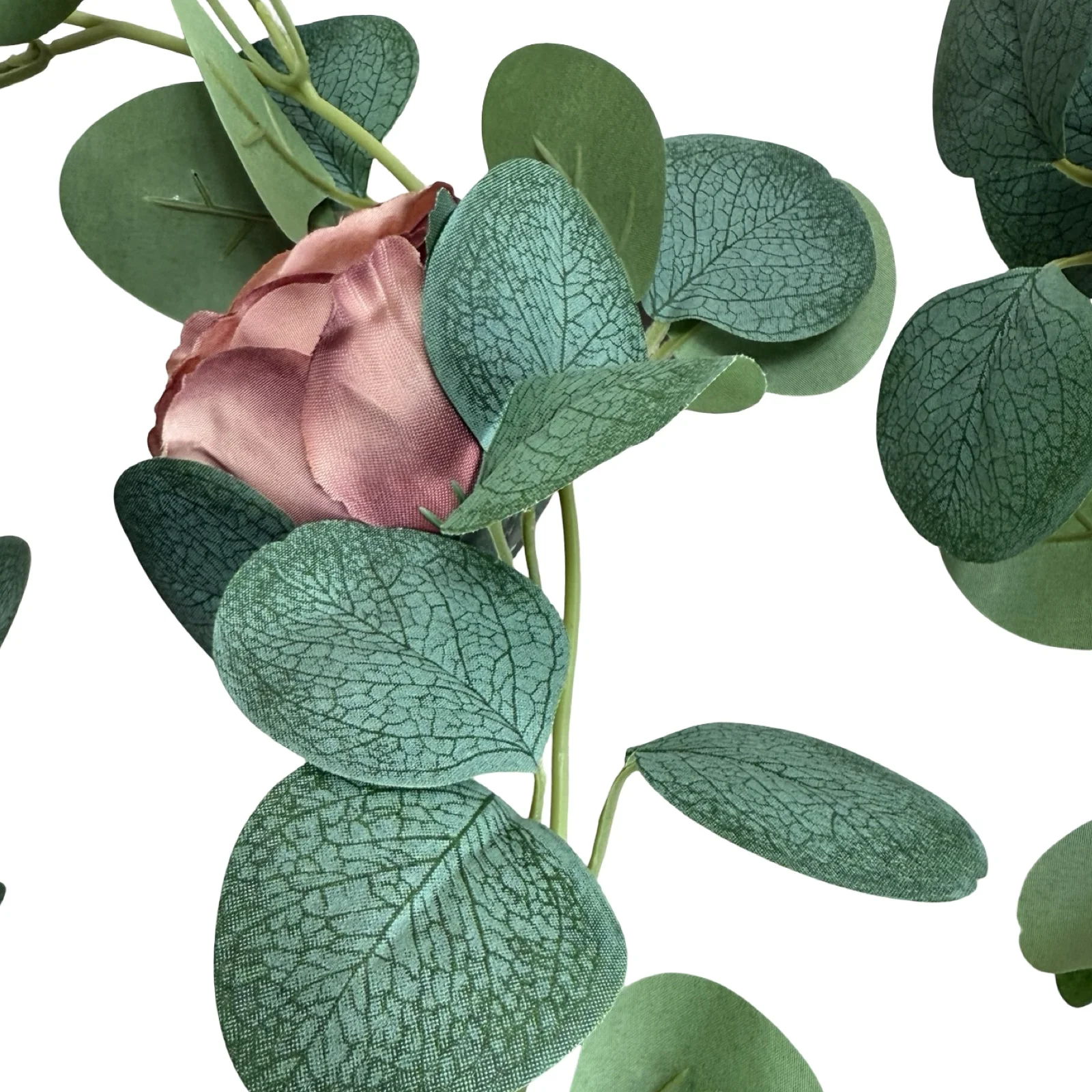 1.6m Pink Tone Deluxe Rose & Silver Dollar Eucalyptus Garland