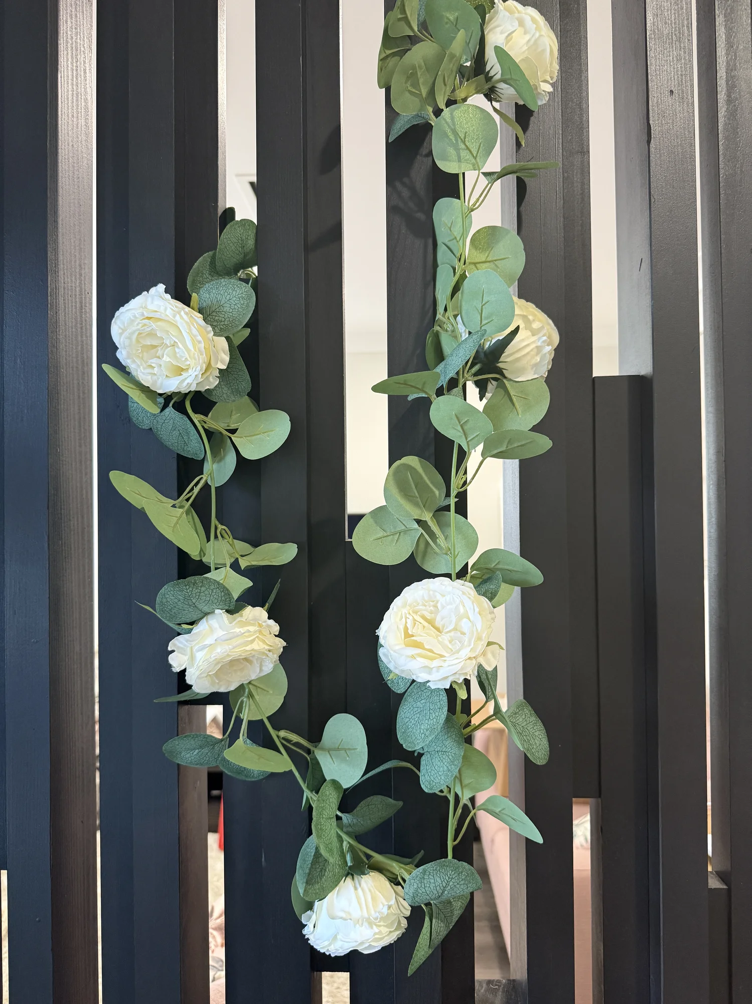 Our 1.6m White Rose and Eucalyptus Garland is a versatile decoration for weddings, events, and home styling. Featuring lush silver dollar eucalyptus leaves and six full white roses with an 8cm diameter, this garland creates a natural look. A loop at one end makes it easy to hang or drape across arches, tables, and backdrops.