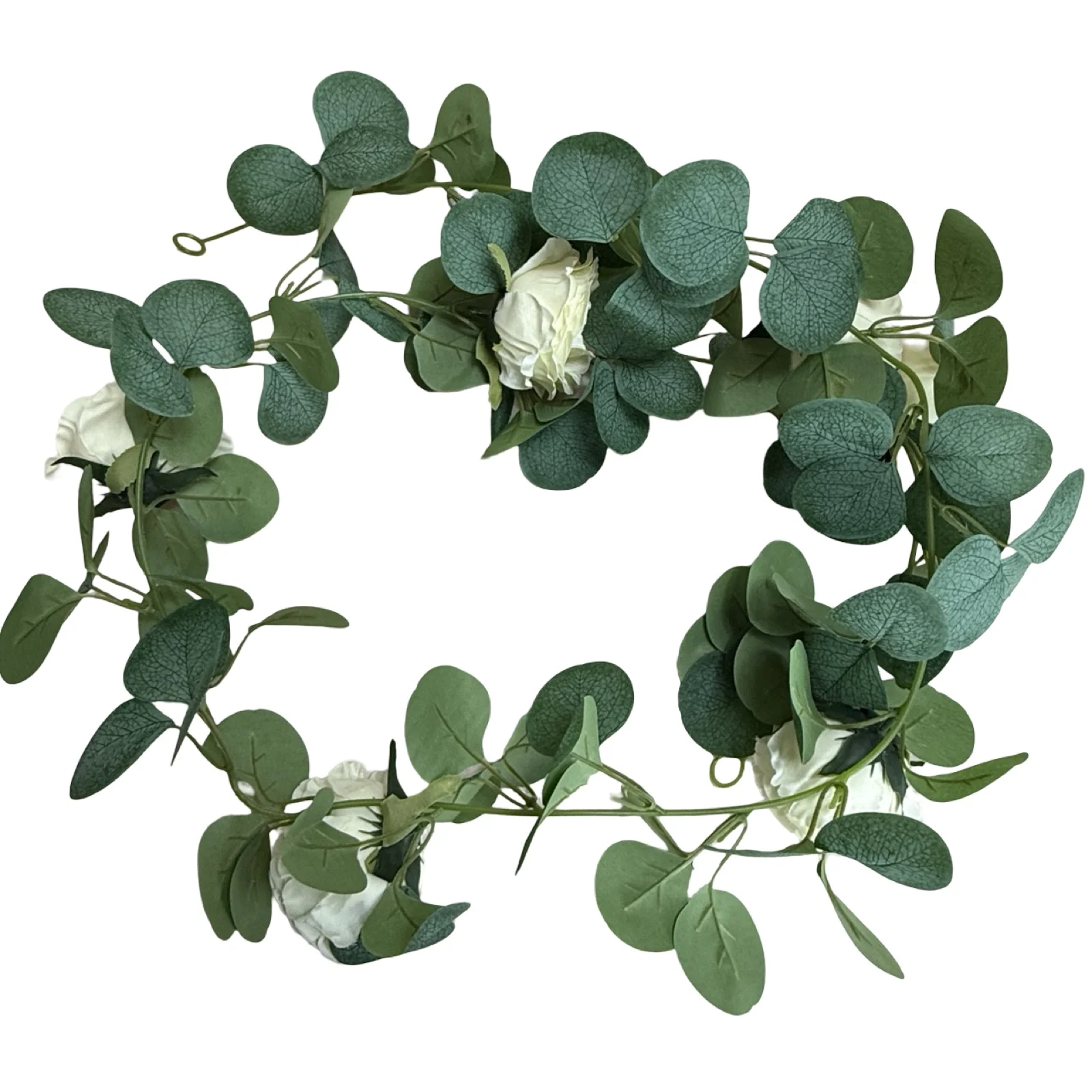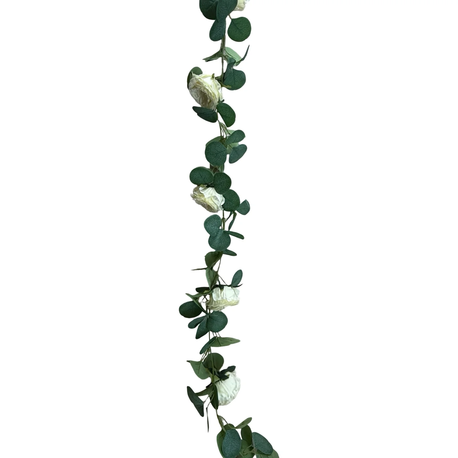 1.6m White Deluxe Rose & Silver Dollar Eucalyptus Garland