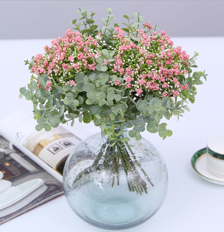 32cm Pink Native Eucalyptus and Blossom Filler Flower Bouquet