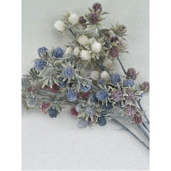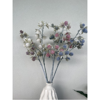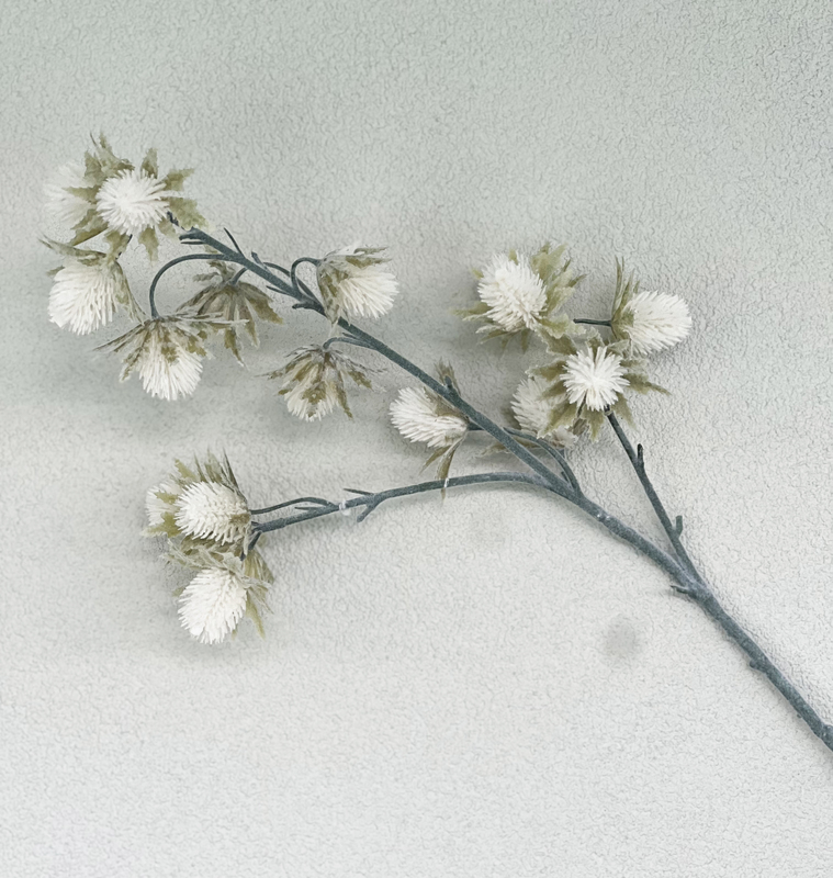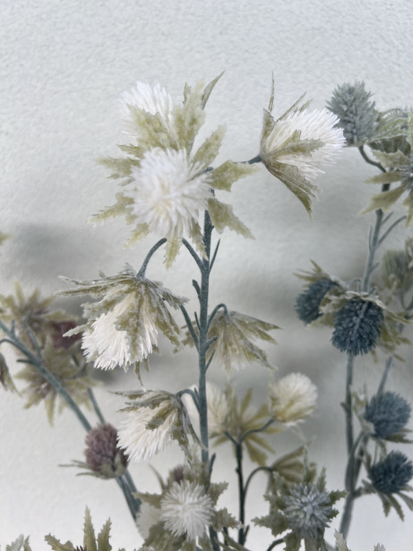 This artificial sea holly stem in white is perfect for creating romantic and sophisticated arrangements, offering all the beauty of fresh flowers with none of the upkeep.