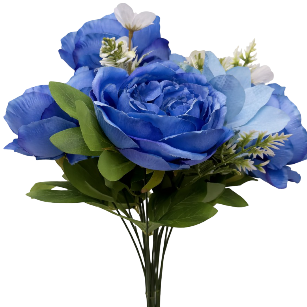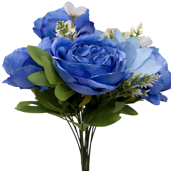 50cm - Blue 11 Head Peony and Mixed Flower Bush Artificial
