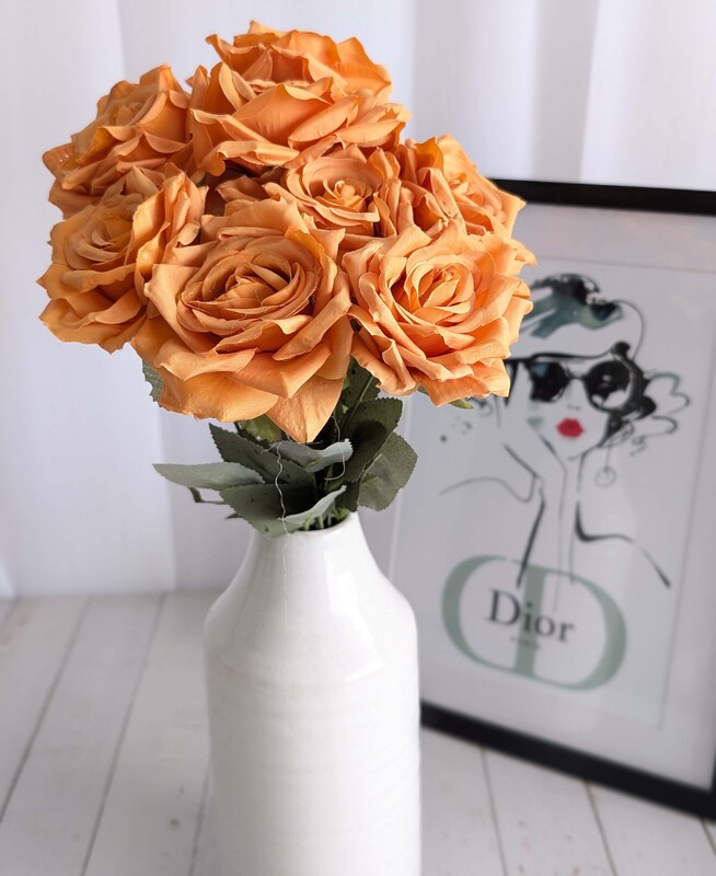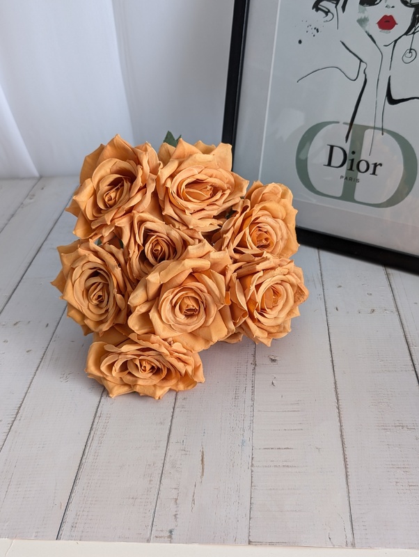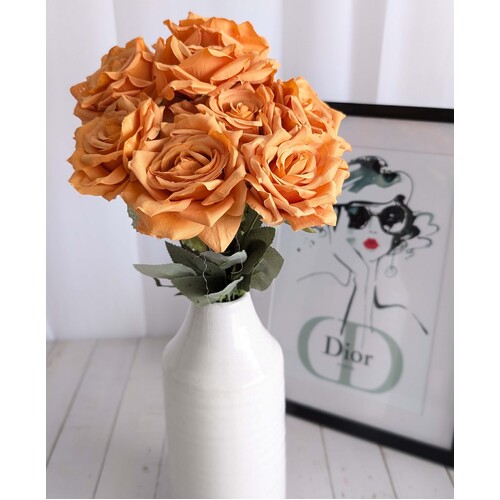 Add a touch of elegance to your floral arrangements with our 47cm Dusty Orange 9 Head Rose Bush. This stunning bush features 9 individual stems, each adorned with a beautifully crafted rose, approximately 8cm in diameter. The realistic leaves with detailed printing enhance the overall beauty of the bouquet. Each stem can be easily separated into individual 35cm pieces, allowing you to customize your designs to suit your needs. Whether you're creating a romantic bouquet, an eye-catching centerpiece, or a large format floral arrangement, this Pink Rose Bush is the perfect choice to add charm and sophistication to weddings, events, or home decor.